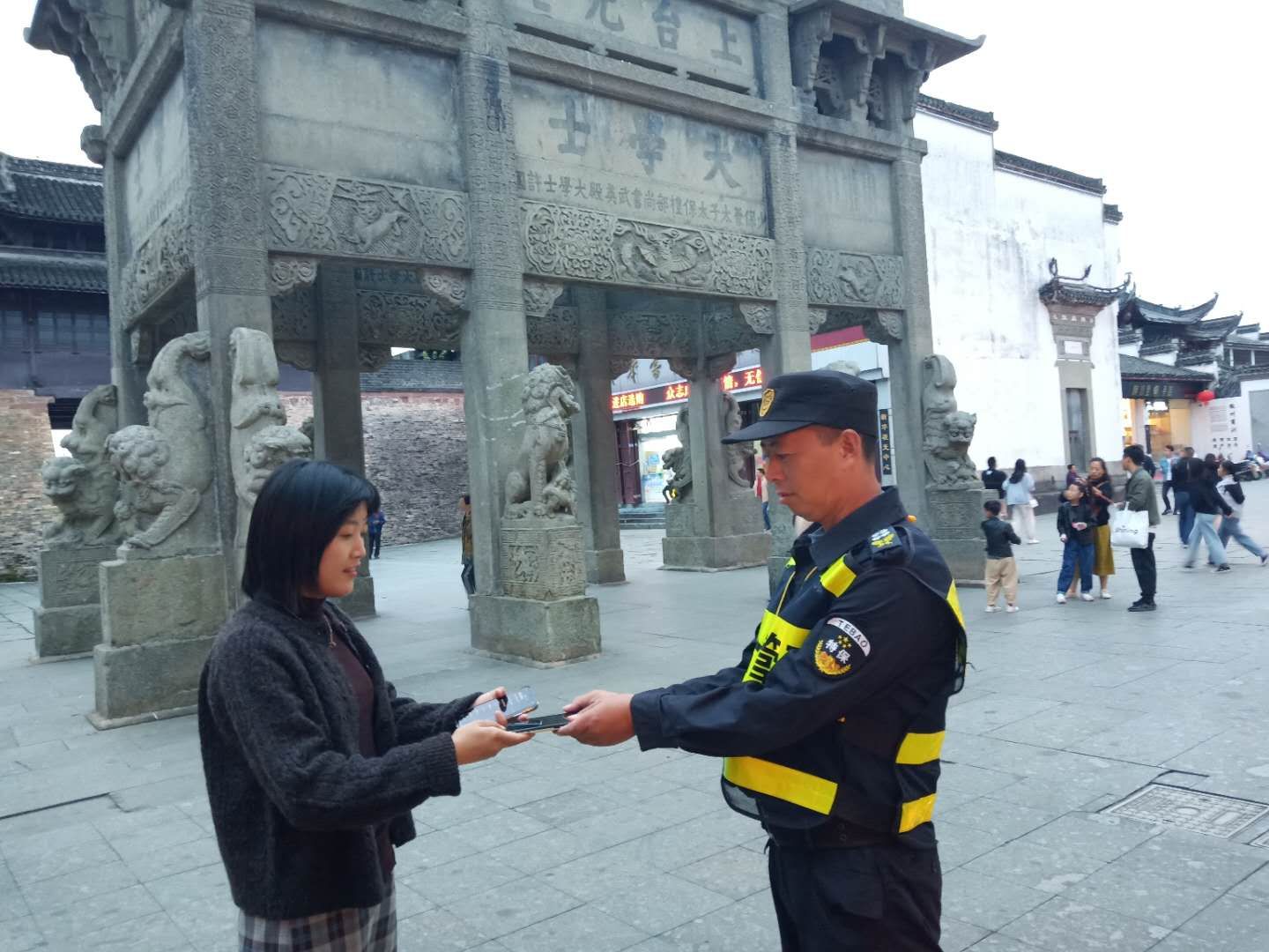 10月5日,宗保公司駐黃山市歙縣項目隊員吳超撿到一部手機歸還失主。 當日,歙縣項目隊員吳超在古城景區(qū)巡邏時發(fā)現(xiàn)一部遺落在地面的手機,撿起后發(fā)現(xiàn)手機設置屏鎖,無法聯(lián)系失主,便立刻向項目負責人報告,并在原地等待。 約20分鐘后,一名女子急急忙忙趕過來尋找手機。經過信息核對,確認是手機主人后,隊員將物品歸還給失主。看到失而復得的手機,失主喜出望外,連聲向值勤隊員致謝。 供稿人:都松林